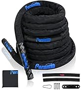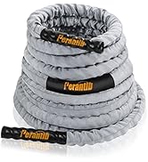 The Perantlb Battle Rope is a premium 1.5-inch diameter, heavy-duty training rope available in 30, 40, and 50 ft lengths. Featuring a wear-resistant nylon protective sleeve and non-slip heat-shrink handles, it delivers durability and superior grip for intense strength and conditioning workouts. The package includes an anchor strap kit and carry bag, making it a versatile, all-in-one fitness solution for both home and gym use.