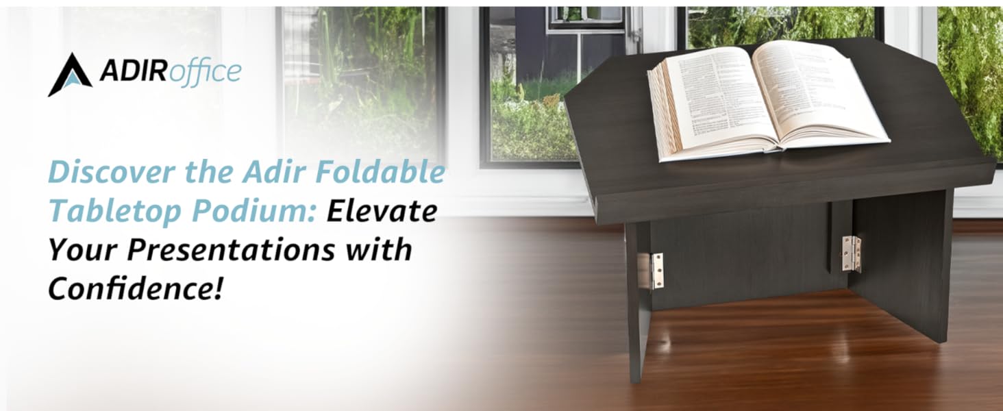 The AdirOffice Tabletop Podium is a portable and collapsible lectern designed for on-the-go speakers and educators. Made from durable MDF wood, it offers a sturdy platform for your materials while being easy to set up and stylishly complementing any décor.
