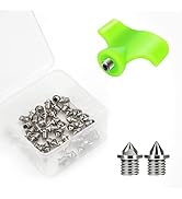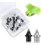 This 32-piece set of 1/4 inch carbon steel track spikes combines ultra-lightweight durability with a pyramid needle design to maximize traction for sprinters and cross country runners. Each spike weighs just 0.47 grams, preventing rust and corrosion for long-lasting performance. The kit includes 16 silver and 16 black spikes, a spike wrench, and a plastic storage box, making it a complete solution for competitive athletes seeking reliable, high-grip footwear enhancements.