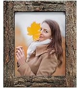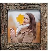 IKEREE (8x10) - 8x10 Picture Frames with Bark Edges, Rustic Wood Photo Frame for Tabletop or Wall Display, Natural Brown