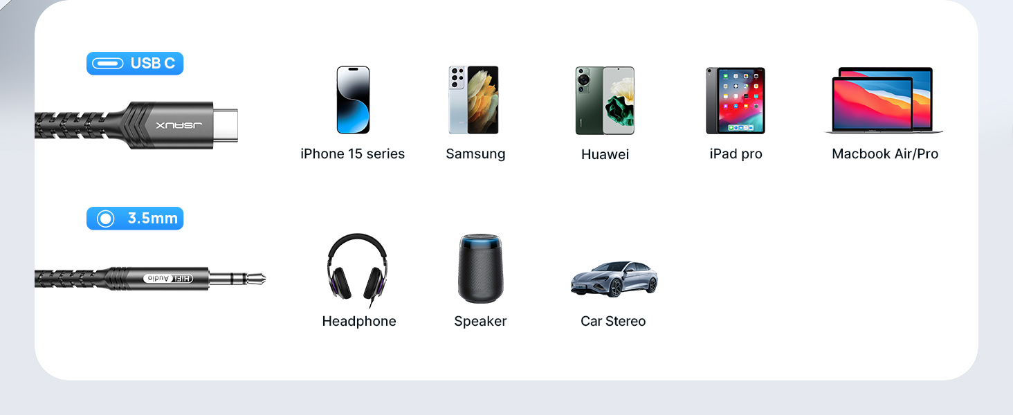 I recently bought the JSAUX USB C to 3.5mm Audio Aux Jack Cable, and I have to say, I’m pretty impressed! Here are my thoughts after using it for a couple of weeks:Pros:Great Sound Quality: The audio is crystal clear, and I haven’t noticed any drop in quality compared to my old headphone jack.Sturdy Build: The cable feels really durable. The nylon braiding is a nice touch, and it doesn’t tangle easily.Plug and Play: No need for any extra software or drivers. Just plug it in, and it works perfectly with my Samsung Galaxy S23.Cons:Compatibility: It works great with most of my devices, but I had some trouble with my friend’s OnePlus phone. Make sure to check compatibility before buying.Overall: I’m really happy with this purchase. It’s a solid, reliable cable that does exactly what I need it to do. If you’re looking for a way to connect your USB-C device to a 3.5mm audio jack, this is a great option. Just double-check that it works with your specific device to avoid any issues.Would definitely recommend it to others!