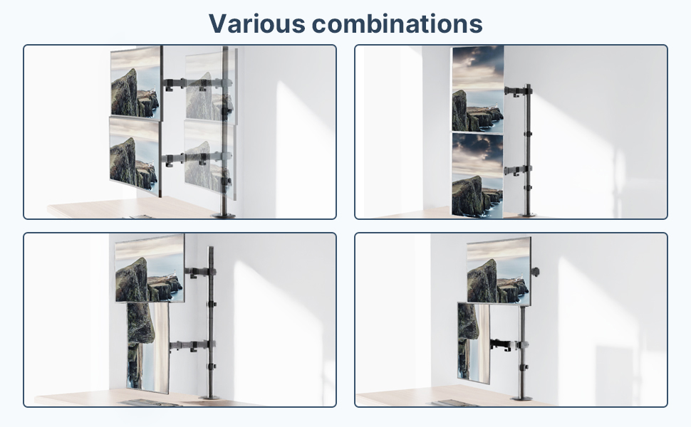 This dual monitor stand is designed for vertical stacking of two monitors between 17 and 32 inches, supporting VESA 75x75mm and 100x100mm mounts with up to 8kg weight per screen. Featuring a robust 800mm pole, it offers 360° rotation, ±45° tilt, and ±90° swivel for ultimate ergonomic flexibility. Dual mounting options include C-clamp and grommet bases, complemented by built-in cable management for a clean, professional desk setup. Easy to install with dedicated customer support, it’s the perfect upgrade for modern multitasking professionals.
