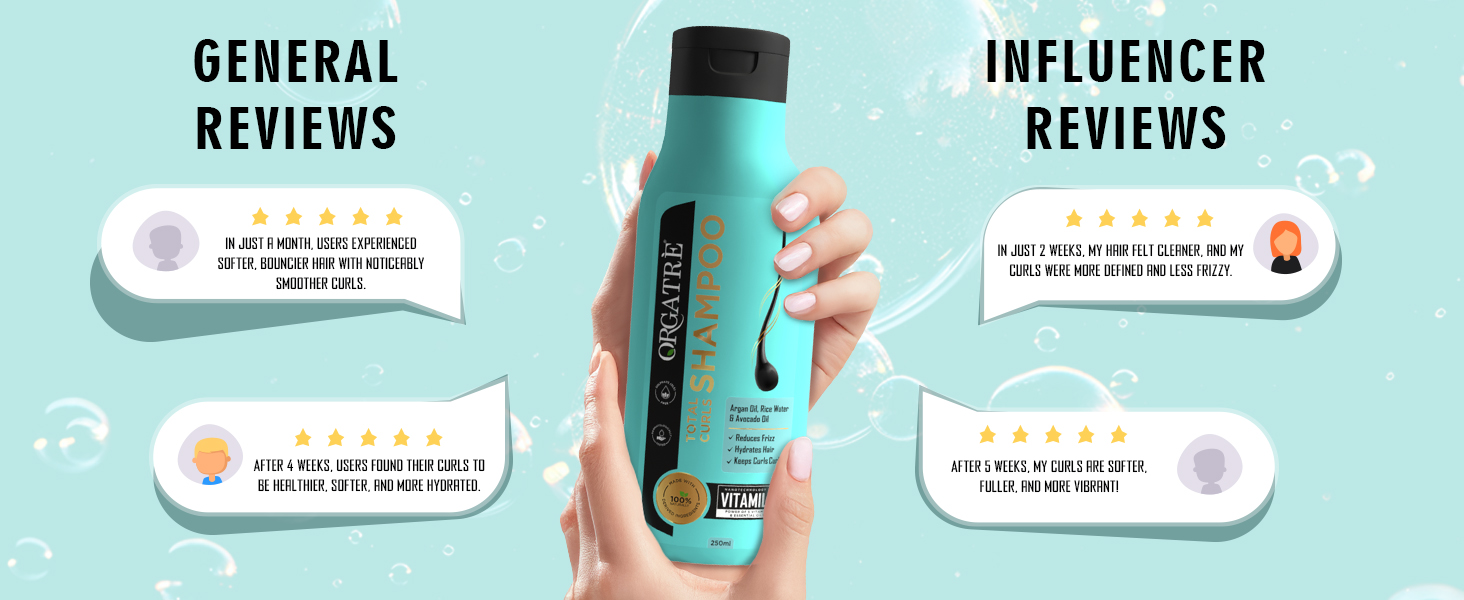 ORGATRE Total Curls Shampoo is a 250ml moisturizing shampoo designed for curly, wavy, dry, and frizzy hair. Enriched with natural ingredients like rice water and argan oil, it provides deep hydration and nourishment while being sulfate-free and gentle on sensitive scalps. The innovative Vitamils Technology ensures your curls are healthy, defined, and vibrant, making every wash a luxurious experience.