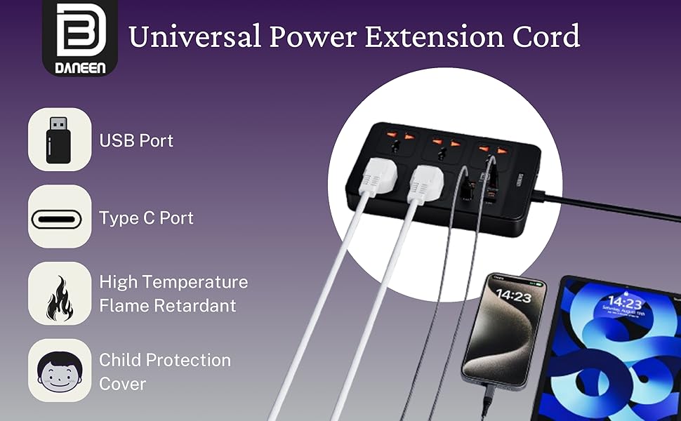 Daneen Power Strip With 5 Ac Outlets 2 Usb 4 | Desertcart Iceland