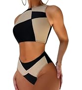 EVELUSTWomens Colorblock Shego Costume - Sexy Rave Festival Outfit Black Green Swimsuits High Neck Crop Top High Waisted Bottom Bikini Sets Adults Cosplay Halloween Costume