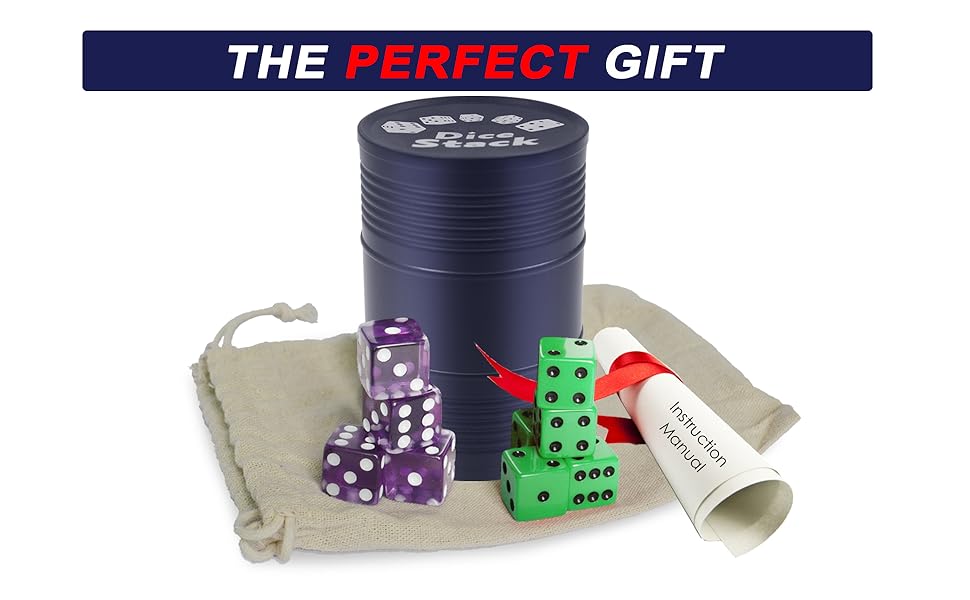 Dice Stacking Set with 4 Pcs 19mm Purple & 5 Pcs 18mm Green Standard 6 Sided Dices, Blue Dice Cup, Storage Bag & Magic Tricks Instruction