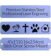 The QIPAN Engraved Custom Name Plate is a 3x1 inch brushed stainless steel plaque offering up to 5 lines of precise engraving, customizable with icons or photos. Designed for indoor and outdoor use, it features rust-resistant material and versatile mounting options including adhesive backing or screws. Ideal for trophies, urns, frames, and more, it combines durability with professional elegance, backed by responsive customer service.