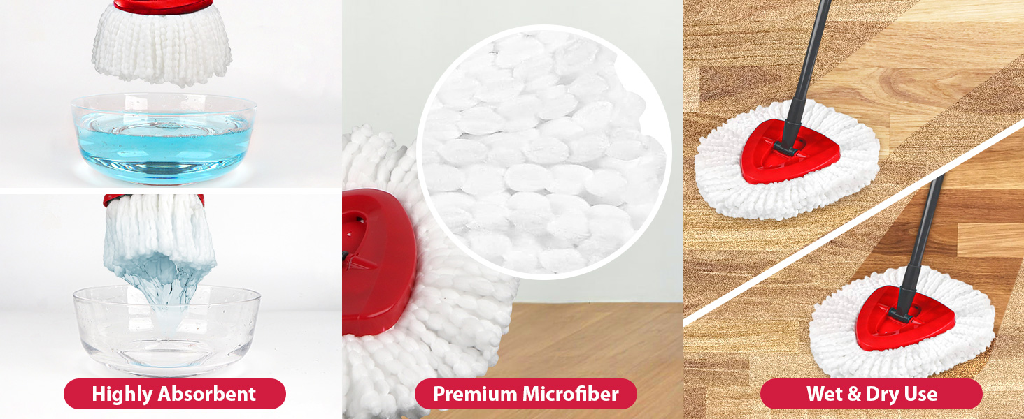 The HOMEXCEL Mop Replacement Heads are designed specifically for the O-Cedar EasyWring Spin Mop, featuring high-quality, machine-washable microfiber that effectively traps dirt and debris. This 3-pack ensures you always have a fresh mop head ready for use, making it perfect for maintaining cleanliness across various surfaces in your home or office.