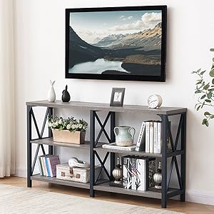 LVB Rustic Sofa Table, Farmhouse Console Table for Living Room, Hallway entryway Table with Storage, Entry Table for Foyer, 55 inch Grey Oak