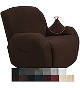JIVINER 4-Piece Recliner Chair Covers Stretch Jacquard Chair Covers for Recliner Chair Recliner Slipcovers for Living Room Soft Recliner Protector with Pocket (Recliner,Dark Coffee)