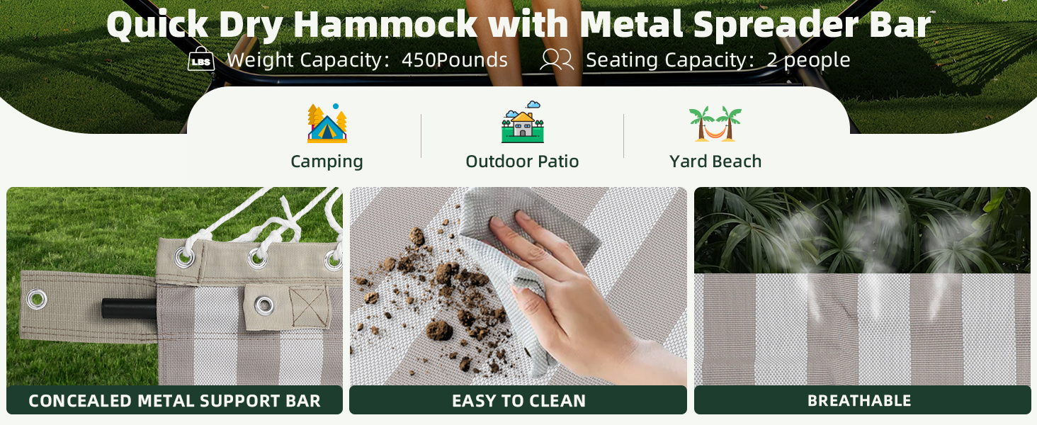 Patio Watcher 13 Ft Quick Dry Textilene Hammock Outdoor Double | Desertcart Iceland