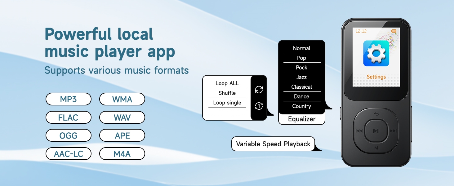 - MULTIFUNCTIONAL POWERHOUSE - Beyond music—FM radio, noise-reduction voice recorder, timer-off, e-book reader, and more, all in a sleek, ultra-light design.