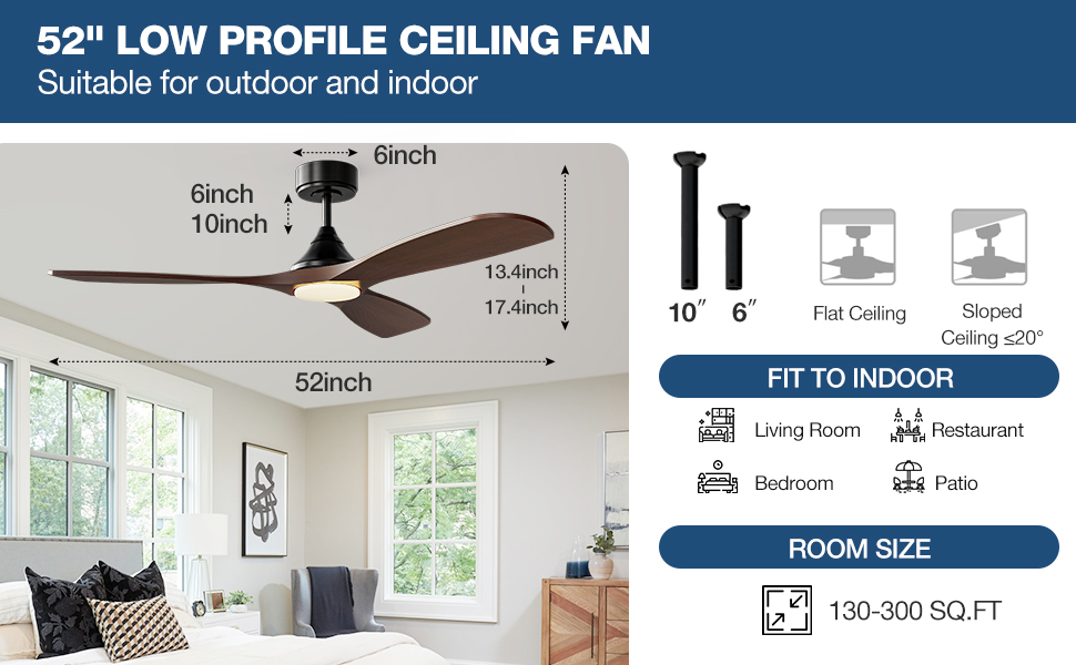 52 Inch Smart Wood Ceiling Fan With Light Ceiling Fans | Desertcart Iceland